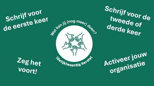 •Activeer jouw organisatie: gooi een balletje op bij de organisatie waar je werkt. We zijn altijd op zoek naar partners om via hen Luisterend Schrijver te werven. Zo zorgt ABN AMRO bijvoorbeeld voor veel Luisterend Schrijvers. Stuur vooral een mail naar partners@gelijkwaardigherstel.nl. We gaan graag in gesprek hoe we elkaar missiegedreven kunnen versterken.
